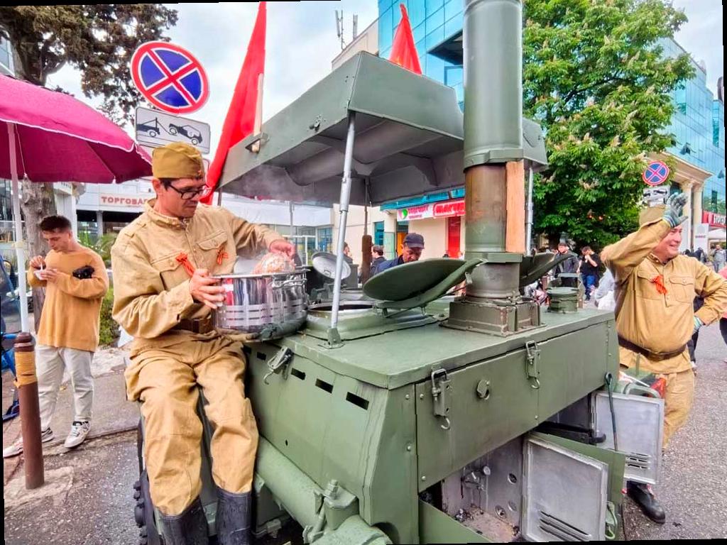 Исторические мобильные точки питания появились на праздничных площадках по всем районам курорта. В рамках инициативы «Солдатская каша» все желающие смогли попробовать гречневую кашу с тушенкой, приготовленную на полевой кухне.