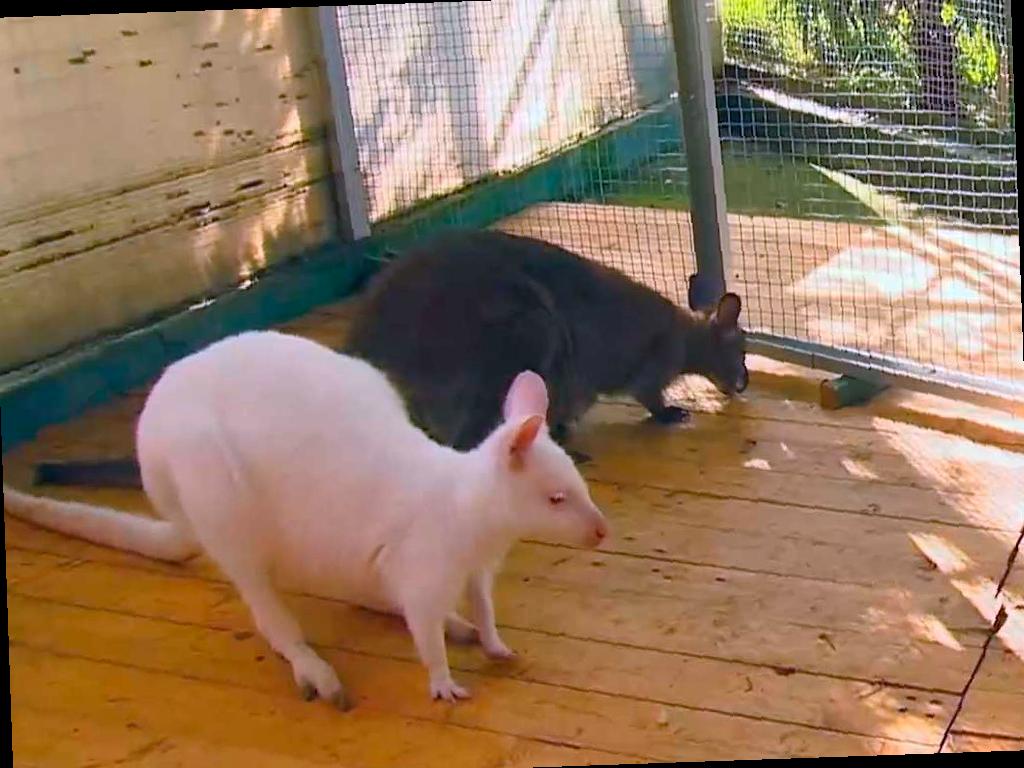 В зоопарке санатория «Октябрьский» в Сочи случилось замечательное событие — на свет появился редкий белый кенгурёнок-альбинос. Это уже второй раз, когда такой малыш рождается в этом зоопарке. Отец новорождённого также был альбиносом. В настоящее время малыш находится на грудном вскармливании и проводит почти все время в сумке у матери.