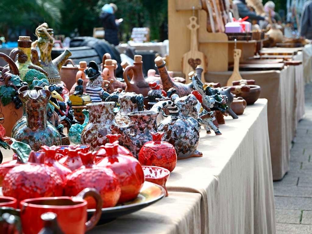 В честь Дня города Сочи на улице Навагинской открылась выставка-ярмарка декоративно-прикладного искусства. Мастера из разных регионов Юга России представили здесь свои работы. Посетители смогут увидеть уникальные предметы утвари и традиционные ремесла Кубани, украшения из различных материалов, гончарные изделия, вязаные игрушки, украшения из природных камней, лоскутное шитьё и многое другое.