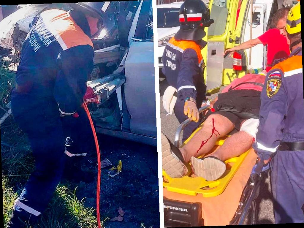 В результате аварии люди оказались зажаты в автомобиле. Спасателям пришлось использовать гидравлический инструмент для освобождения пострадавших.