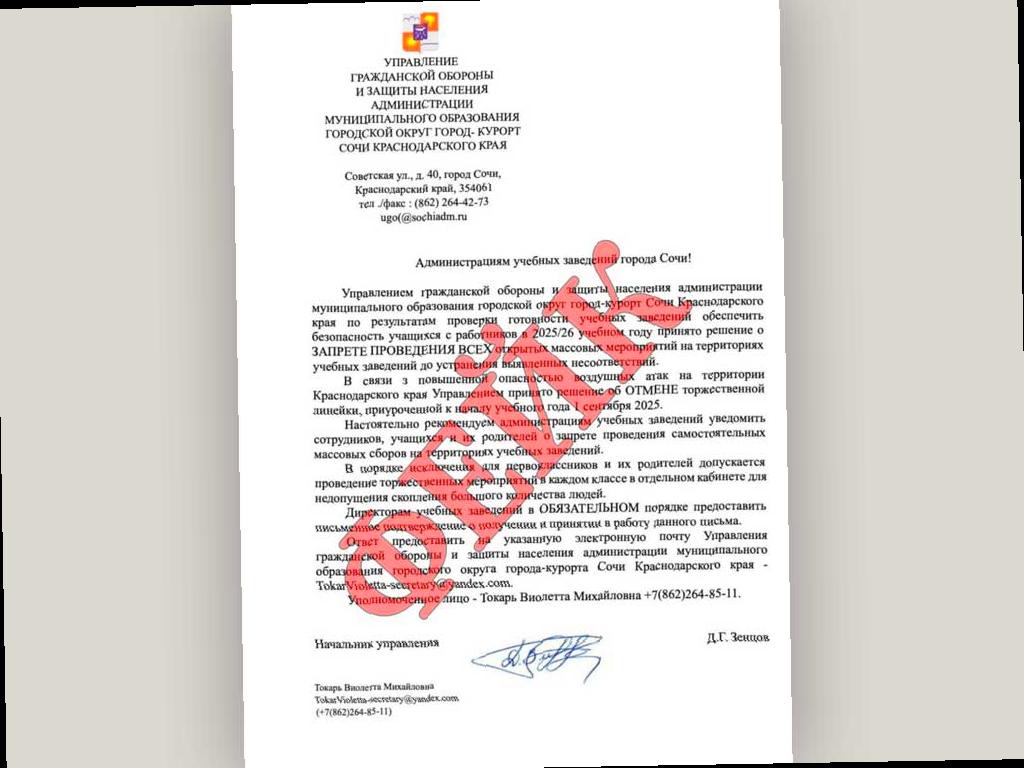 В соцсетях появилось сообщение о том, что все открытые мероприятия отменены к началу учебного года. Предполагается, что это предписание пришло от управления гражданской обороны и защиты населения администрации Сочи.
