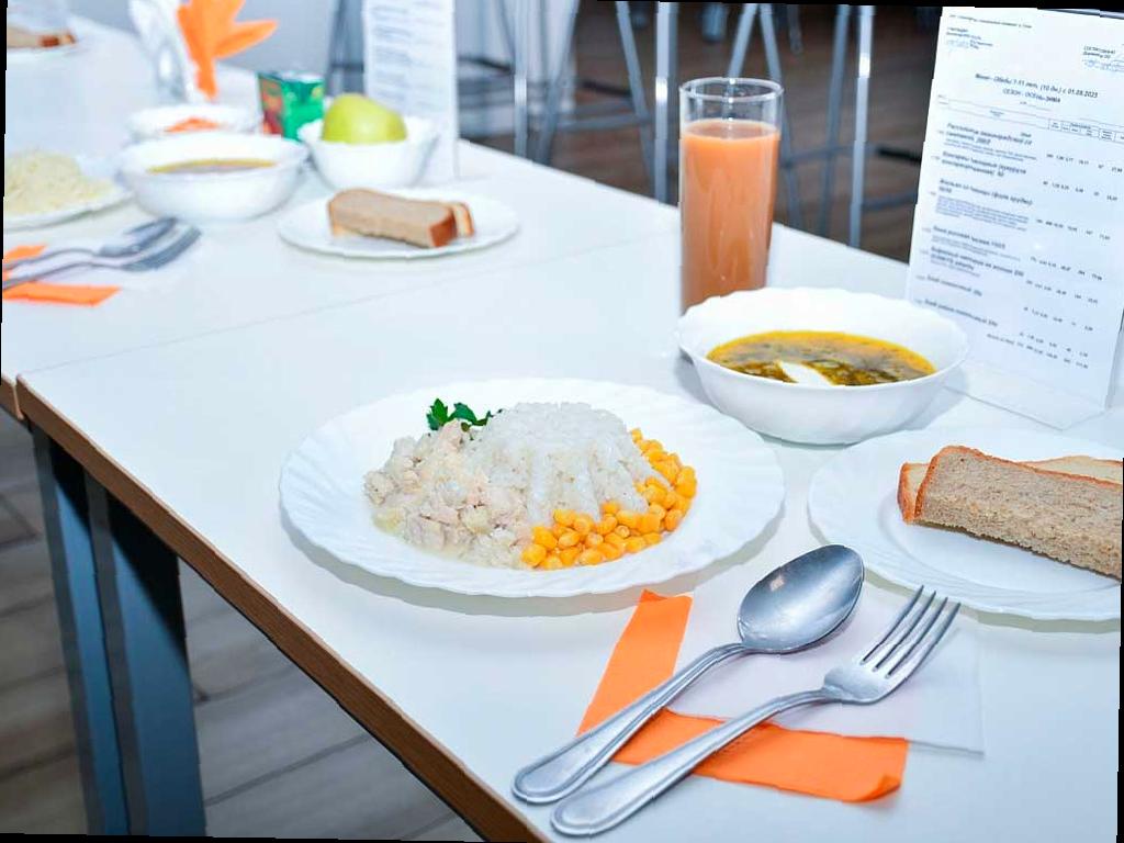 В новом меню сохранены популярные блюда среди школьников, такие как стрипсы из курицы, рыбные палочки, котлеты, плов и другие. Также были представлены новые блюда, такие как филе горбуши, мюсли с фруктами и напитки в индивидуальной упаковке. Меню составлено с учетом стандартов Роспотребнадзора и рекомендаций медэкспертов, используя продукты от местных производителей.