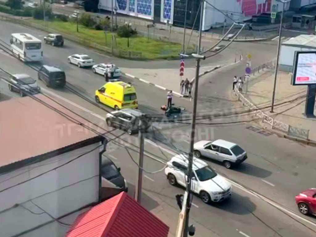 Сегодня утром в Центральном районе Сочи произошла авария, в которой пострадал водитель мопеда. Свидетели утверждают, что автоледи совершила поворот на ТРЦ «МореМолл» через сплошную линию.