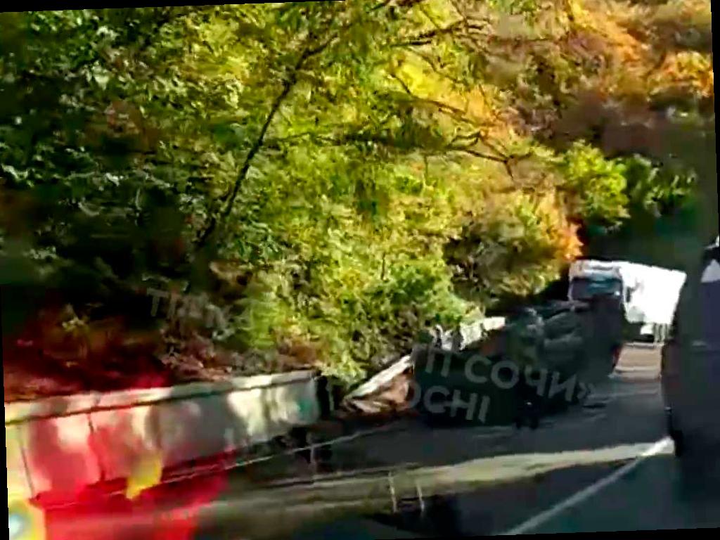 Сегодня днём на трассе «Джубга — Сочи» произошла авария. Видеозапись с места происшествия была опубликована в телеграм-канале «ДТП Сочи». Автомобиль перевернулся на повороте между посёлками Шепси и Магри, блокируя часть дороги и затрудняя движение.