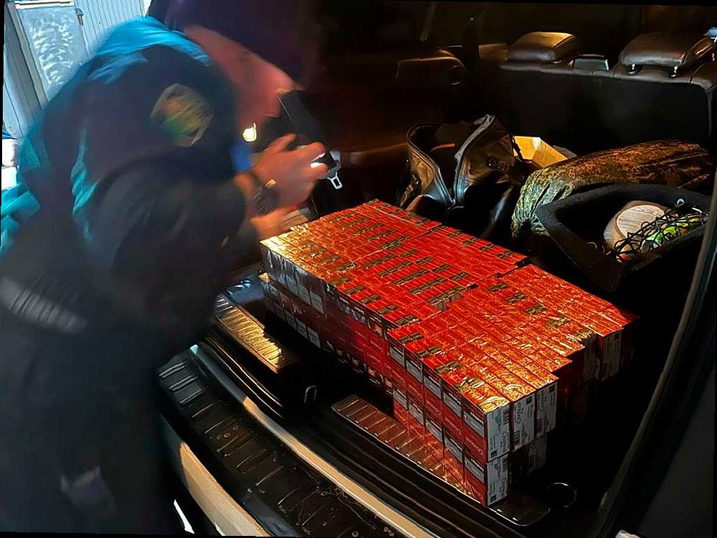 При досмотре автомобиля были обнаружены табачные изделия в пакетах, спрятанных под капотом, за сиденьями и в полостях задних крыльев. Всего было изъято более полутора тысяч пачек сигарет марки «CHAPMAN» из Германии. Весь товар не имел необходимой маркировки и российских акцизных марок.