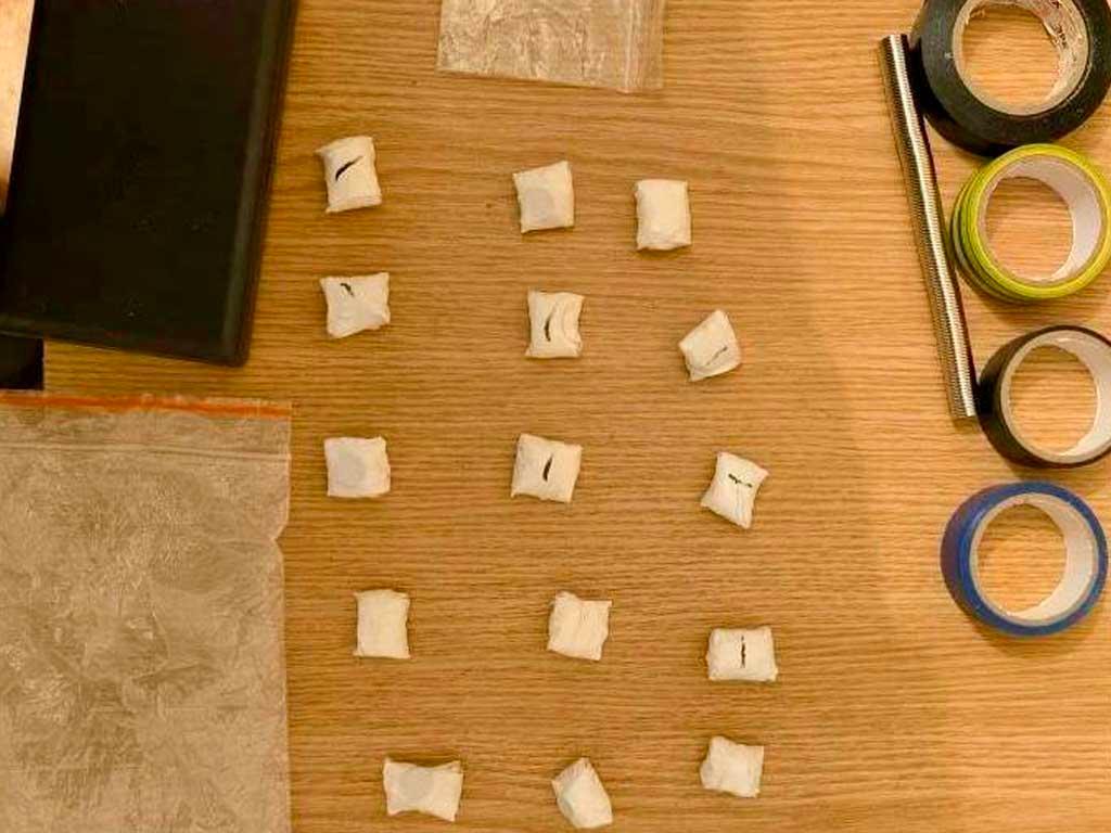 При задержании у мужчины было обнаружено 82 свертка с наркотиками. Еще 15 свертков, весы и упаковочный материал были найдены в квартире, где проживал приезжий. Экспертиза показала, что общий вес синтетического наркотика эфедрон составляет около 100 граммов.