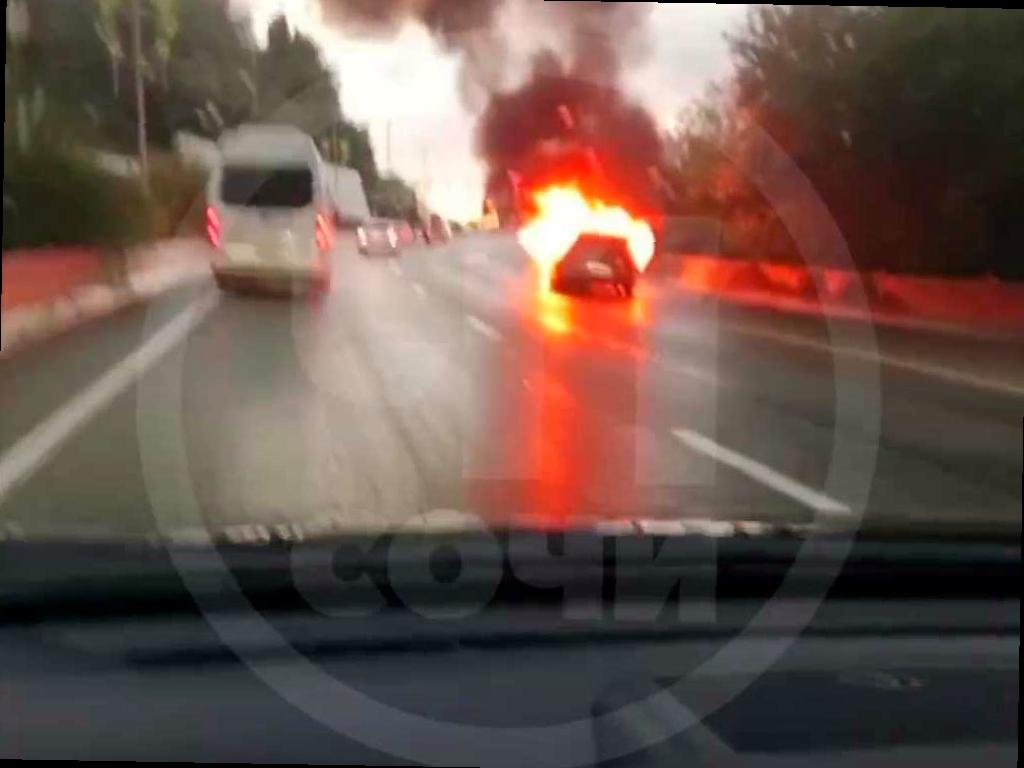 В Сочи произошёл инцидент на трассе: автомобиль загорелся